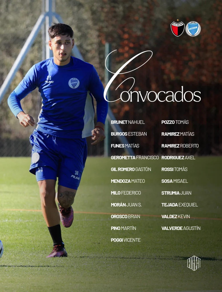 Las ausencias en la lista son las de Nahuel Ulariaga, quien presenta una distensión en el bíceps femoral izquierdo, y Juan Andrada, con una contractura en el bíceps femoral derecho.